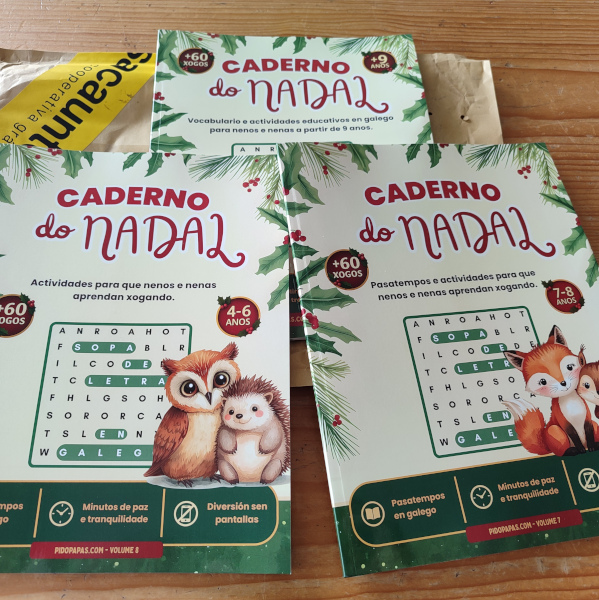 Estes libros-xogos están compostos de sopas de letras relacionadas co apalpador, festas e Nadal en Galicia.